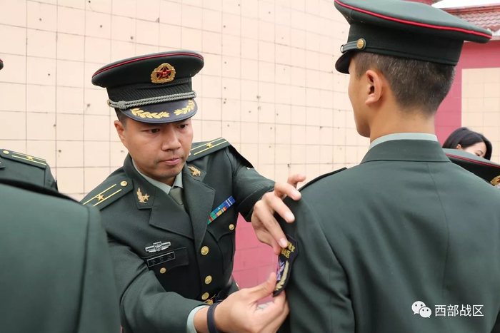 班长为新兵佩戴军衔