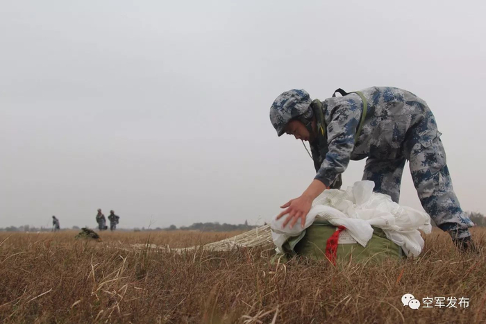着陆后,女兵们在快速整理降落伞。(闵宇祥 胡 昊摄影报道)