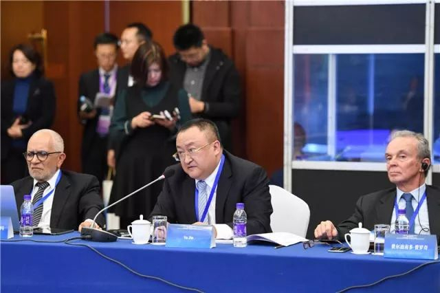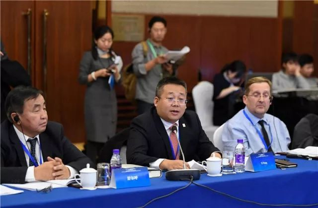▲盘古智库理事长易鹏(中)在“中共十九大:中国发展和世界意义”国际智库研讨会的平行会议上发言(11月16日摄)。新华社记者陈晔华摄