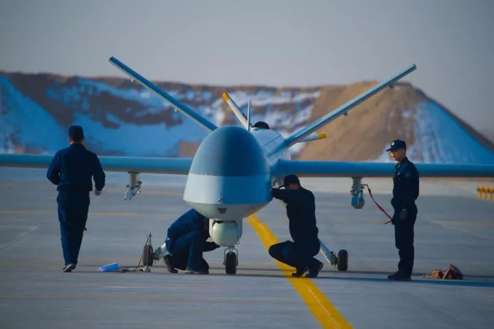 参加夜间任务的无人机即将起飞。杨军 摄
