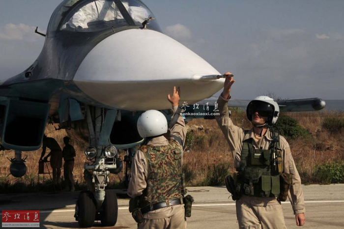 事实上,在俄罗斯在叙利亚的空袭行动中,苏-34是表现最好的战斗机之一。它们使用像KAB-500“格洛纳斯”全球导航卫星系统制导炸弹这样的武器以及诸如Kh-25ML和Kh-29L等制导导弹,实施了大量精确制导的空袭行动。俄罗斯政府对这种轰炸机的表现非常满意,因此还特地颁奖给新西伯利亚飞机制造厂厂长谢尔盖·斯米尔诺夫。图为俄军在叙利亚军事基地内的苏-34。