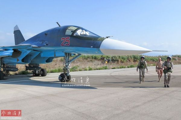 资料图片:图为驻扎在叙利亚赫梅尼姆空军基地的俄军苏-34战斗轰炸机。