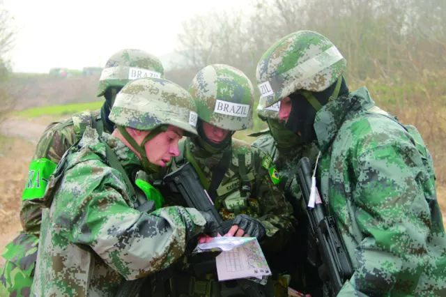 ▲“精武-2014”军事项目对抗赛巴西队定向越野现场