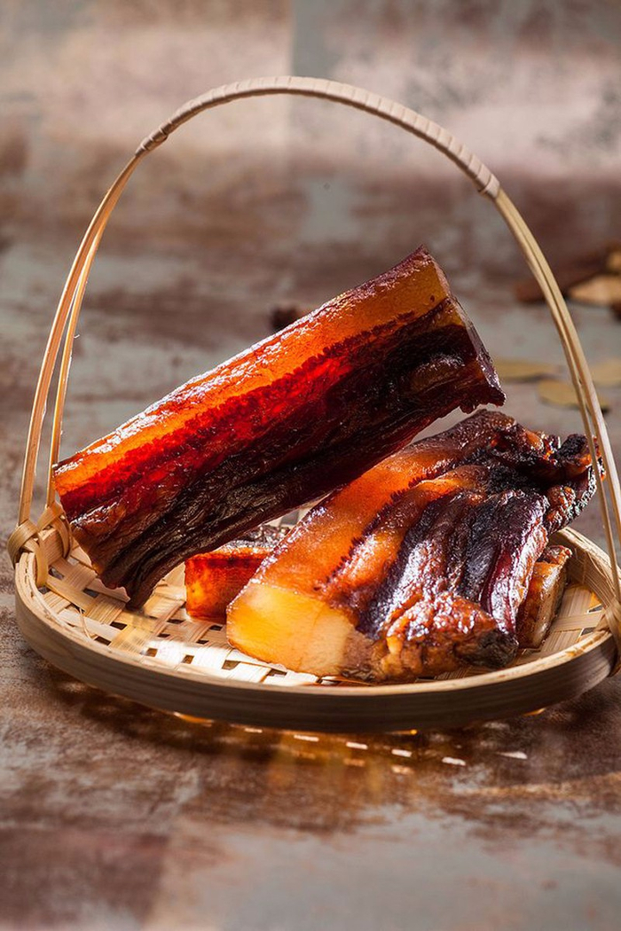 人们用食盐,配上花椒、大茵、大料、桂皮、丁香等香料,把肉腌好,自然风干。在巴蜀地区,做法另有不同,把肉腌在缸里,7到15天之后,用棕叶或者竹蔑绳索串挂起来,滴干水,再用柏树枝条树叶、甘蔗皮熏烤,最后挂起来用烟火慢慢熏干而制成“烟熏腊肉”。久藏不腐,腊香味美,煮熟切片,瘦肉棕红有泽,肥肉油而不腻,上席佐餐均宜。