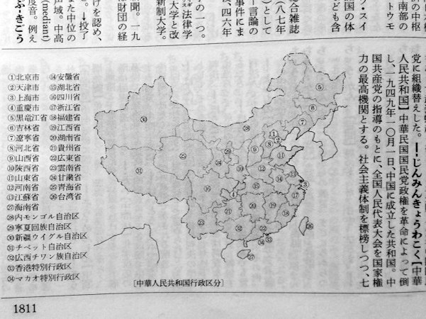 第一,在“台湾”的条目中有“1945年日本战败回归中国,1949年移转给国民党政权”的描述,抗议团体称这完全“违反事实”。第二,在《广辞苑》第1811页的中国地图(如图)中,台湾被列为中国的第26个省,并以数字明记。第三,《广辞苑》中“日中共同声明”条目的记述是:“日本承认中华人民共和国是唯一正统政府,对台湾的(中国)归属,等于是实质上的承认”,这也引起这些团体不满。