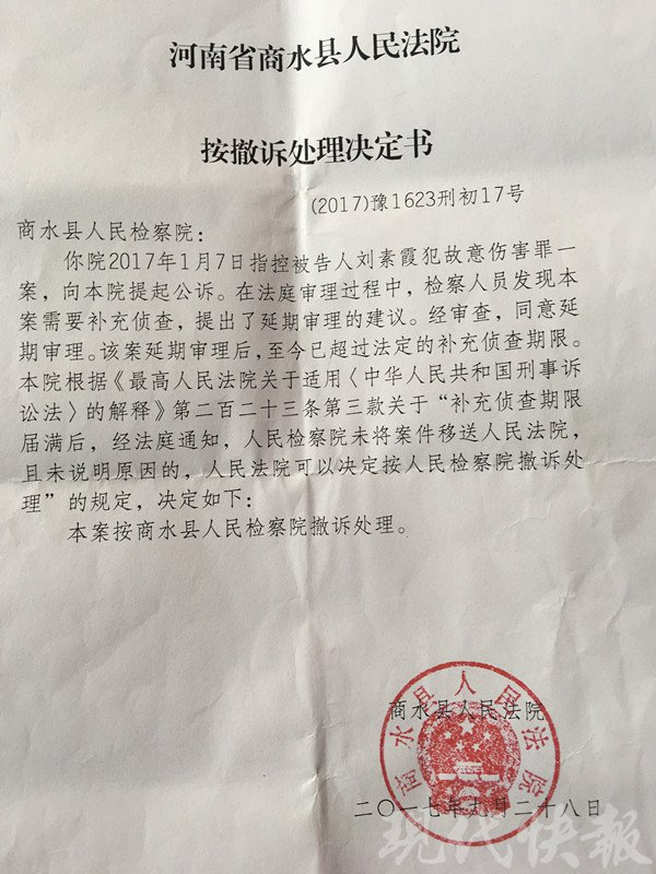 女子被错关261天:商水县人民法院对商水县检察院出具的按撤诉处理决定书