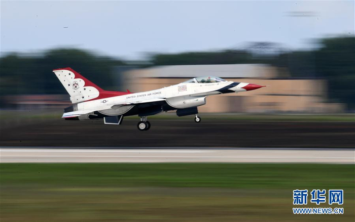 美国空军“雷鸟”飞行表演队F-16战机起飞。新华社记者 殷博古 摄
