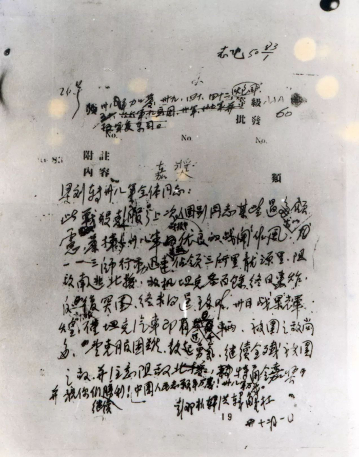 彭德怀总司令亲笔起草的嘉奖令