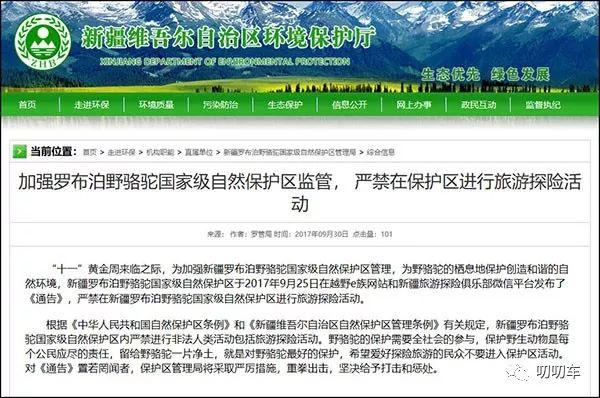 根据新疆维吾尔自治区环境保护厅官网上公布的《加强罗布泊野骆驼国家级自然保护区监管,严禁在保护区进行旅游探险活动》。文件明确强调,新疆罗布泊野骆驼国家级自然保护区内严禁进行非法人类活动,包括旅游探险活动。