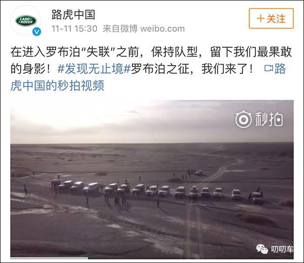 从路虎中国官微上可以发现,11月10日起的连续四天时间里,官微每天公开传播路虎车队深入罗布泊的信息。