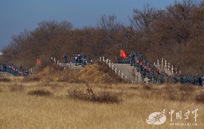 “出发。”旅长下达行军命令,各调整哨位迅速就位。至此,中部战区空军某新训旅综合拉练考核正式展开。