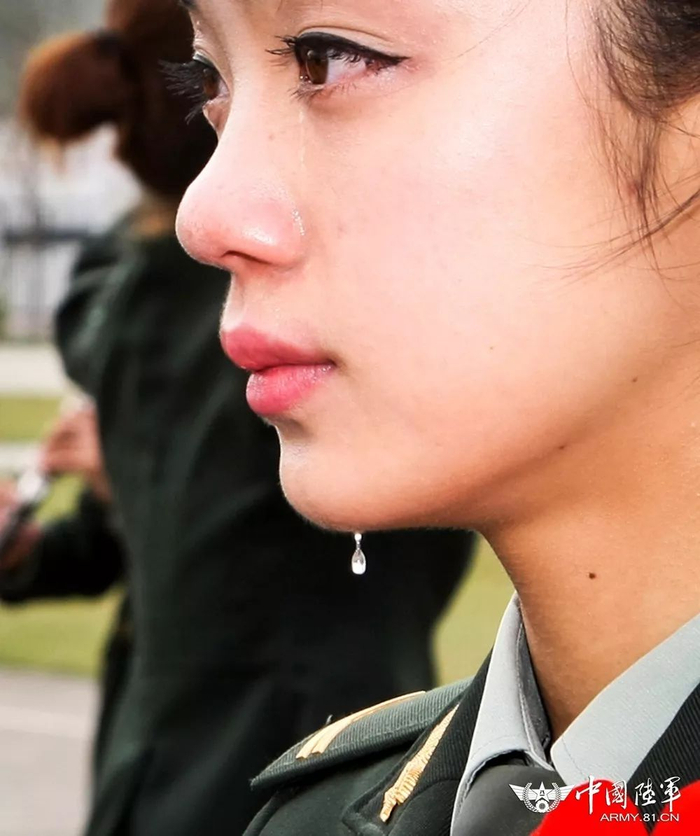 退伍之际,南部战区陆军某旅女兵黄智宇流下了不舍的眼泪。 (张正举 摄)