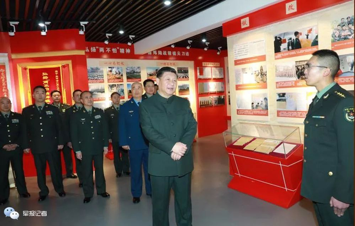 12月13日下午,习近平来到第71集团军某旅王杰生前所在连,视察连队荣誉室,走进王杰班与战士座谈。他充分肯定连队尊崇英雄、学习英雄的做法,指出一不怕苦、二不怕死精神过去是、现在是、将来永远是我们的宝贵精神财富,广大官兵要努力学习践行“两不怕”精神,争做新时代王杰式的好战士。