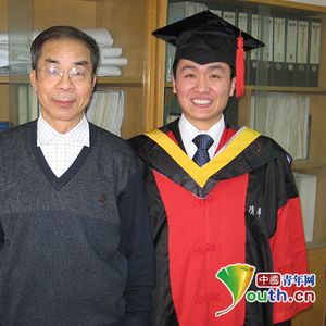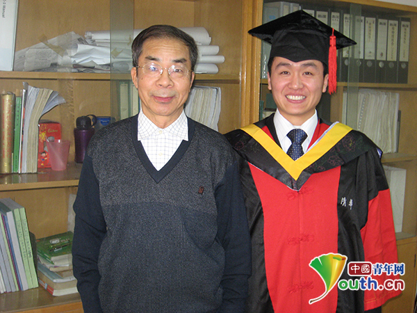 2008年,石秀安(右一)博士毕业时与导师胡永明教授合影。本人供图