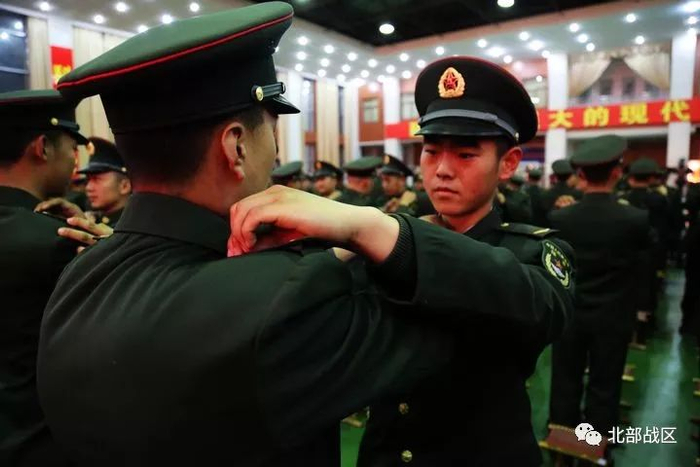 战友之间相互佩戴军衔。