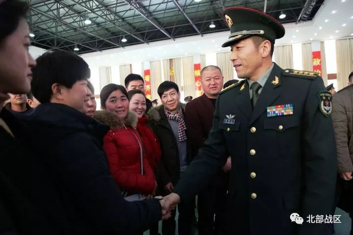 旅领导与新兵家长亲切交谈。
