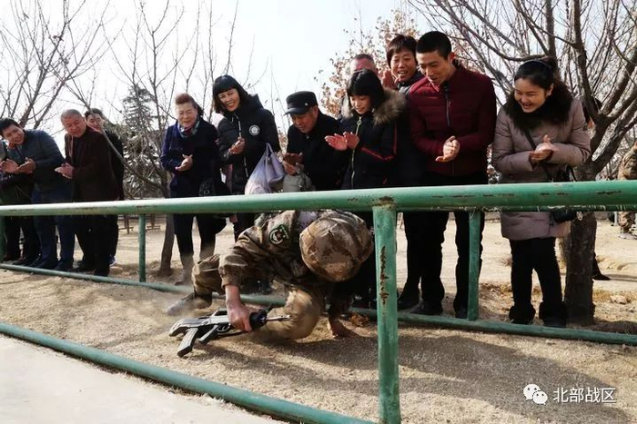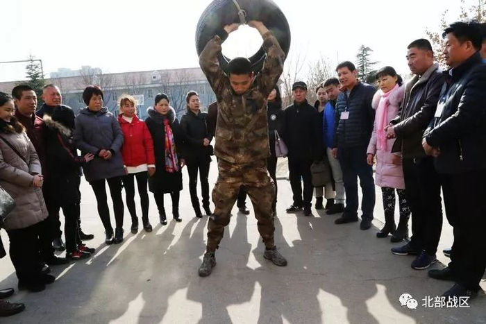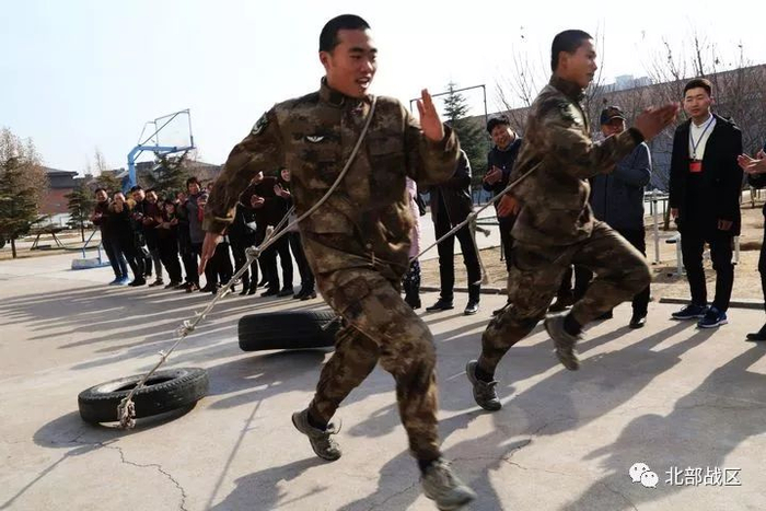 新兵三连门前,刚刚佩戴军衔的新战士格外兴奋。他们迫不及待地向亲人展示了队列、战术、推举杠铃和拖轮胎等训练课目。