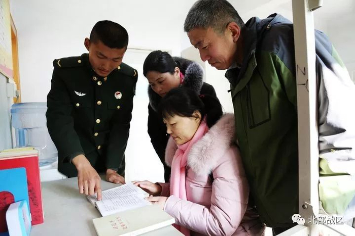 新兵宋祥雨向家人展示学习成果。