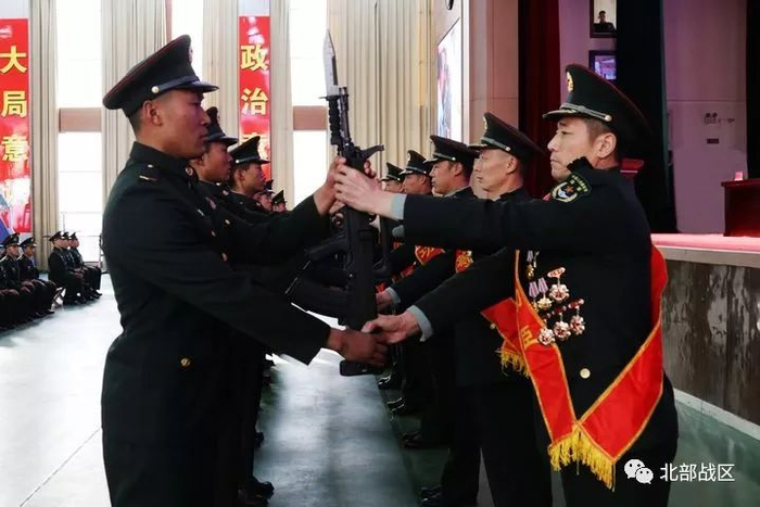 “你接过这支枪,就意味着接过了祖国和人民庄严而神圣的使命和责任,你要认真学习习主席系列重要讲话,践行习主席新时代强军思想,争做‘四有’新时代革命军人,苦练杀敌本领!是否清楚?”