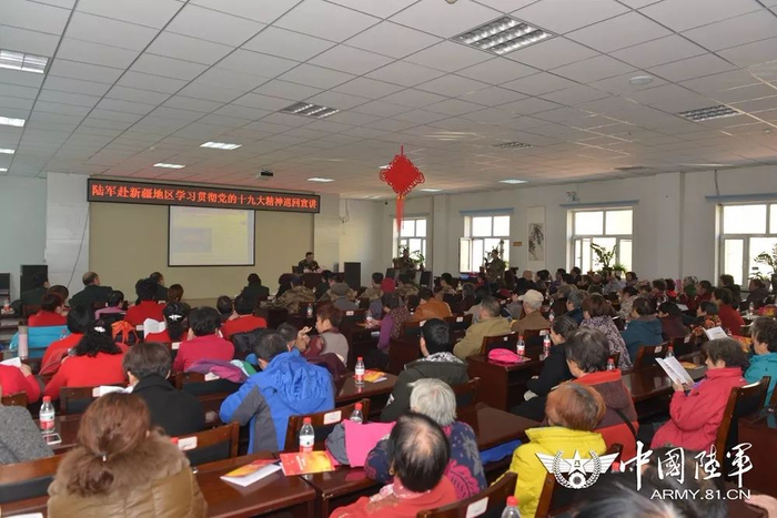 11月19日起,陆军政治工作部抽组5名专家成立双语宣传队,走进新疆吐鲁番、乌鲁木齐等地,向各族干部群众宣讲党的十九大精神,累计听众近5000人,发放双语宣传资料2500余册,解答800余名群众关切的热点问题,受到了各族群众的热烈欢迎。