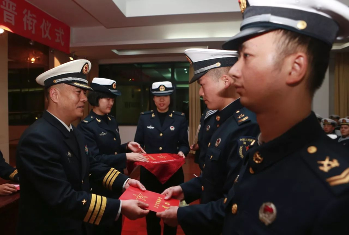 连日来,东海舰队多支部队都为新晋升军衔的士官举行了隆重的士官晋升军衔仪式。在过去很多年里,晋升士官都鲜有正式的授衔仪式,如今,东海精兵们接过命令状、戴上新军衔满脸自信地享受着这一光荣时刻。