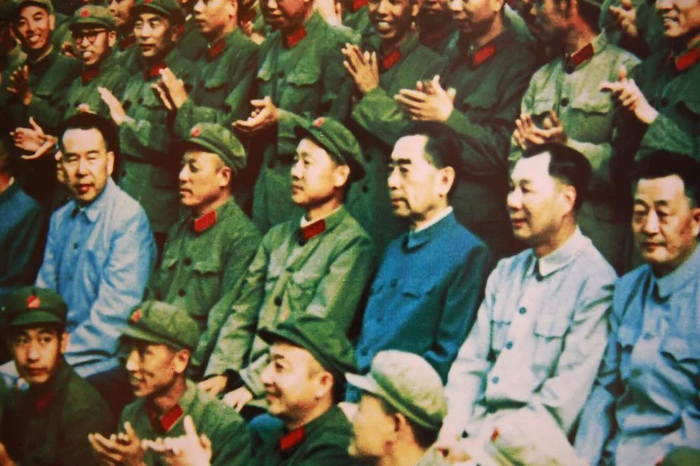 毛主席和党和国家领导人接见该部官兵画面