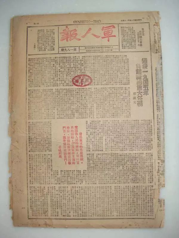 《军人报》,1945年1月4日,四开四版,第189期。该报1944年3月28日创刊,是十八集团军山东渤海军区政治部机关报,1945年11月改名《前锋》报,1950年随编制撤销停刊。