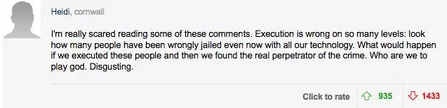 一位欧洲的网友则评论称:“完全同意恢复死刑!来一场公民投票就能知道有多少人也是这样想的,只有这样我们才能感到安全。任何执政党想恢复死刑的,我都投你们一票!”