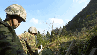 山间不时传来阵阵爆炸声,这是官兵们在爆破销毁性能不稳定的地雷和爆炸物。