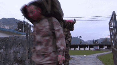 12时,官兵们撤出雷场,回到山脚下吃午饭。饭前,和平时一样要唱一首歌,虽然是在雷场执行任务,官兵们还是严格执行着部队的规矩。嘹亮的歌声在山间回荡,听着让人振奋,宣示着官兵们排雷的决心和勇气。饭菜自取,一人捧一个大碗,蛋炒饭、三菜一汤,每人还有一个蛋糕、一杯饮料,谈不上多丰盛,却很充实。没有想象中的高谈阔论或者交流,只有扒饭菜和咀嚼的声音。官兵们的饭量挺大,瘦瘦小小的个子也能吃下满满的一大碗,可见他们体力消耗之大。