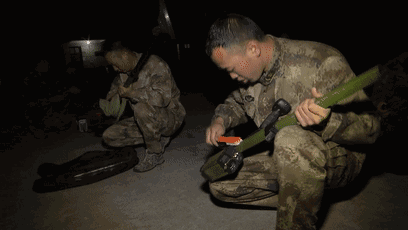20日一大早,文万银带着几名官兵到弹药库取爆破筒。他们将成箱的爆破筒取出来,一节一节的装入特制的背包。