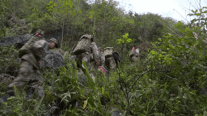 挺进雷场,人力转运,每名官兵负重40公斤以上