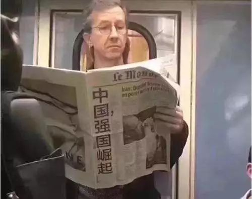 法国《世界报》头版出现“中国,强国崛起”六个中文大字(图源:环球网)