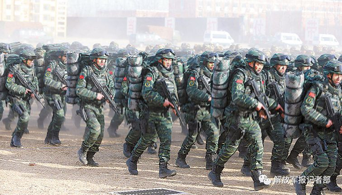 1月3日上午10时,武警北京总队训练基地,首长机关射击训练方阵、冬季野营大拉练方阵、特战魔鬼周极限训练方阵、应急保障训练方阵等8个方阵数千名官兵以及由综合指挥车、装甲车、运兵车、运输车等组成的装备方阵,群情激昂,聆听习主席开训动员训令。
