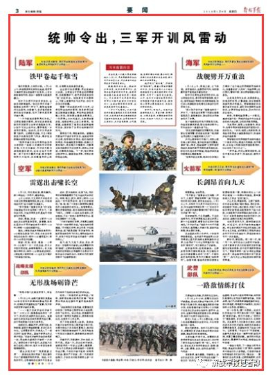 1月3日上午10时,武警北京总队训练基地,首长机关射击训练方阵、冬季野营大拉练方阵、特战魔鬼周极限训练方阵、应急保障训练方阵等8个方阵数千名官兵以及由综合指挥车、装甲车、运兵车、运输车等组成的装备方阵,群情激昂,聆听习主席开训动员训令。