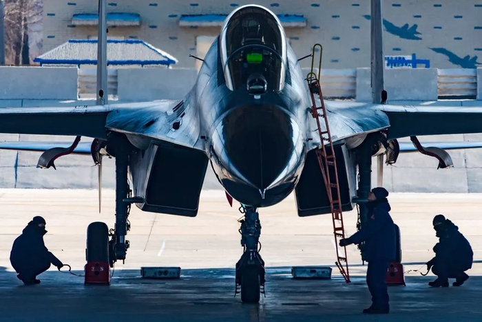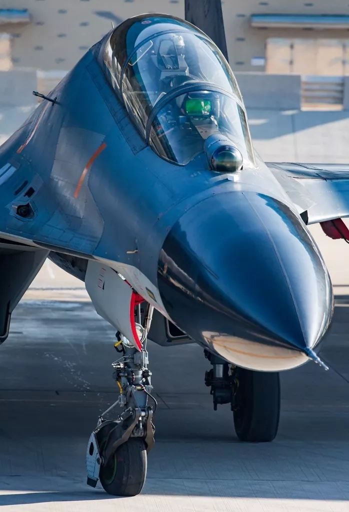近-20℃的机场上,十余架国产某新型战机齐装满挂“一”字排开,参训飞行员全副披挂进入座舱,地勤保障人员分列飞机两侧为放飞战机做最后的准备工作。