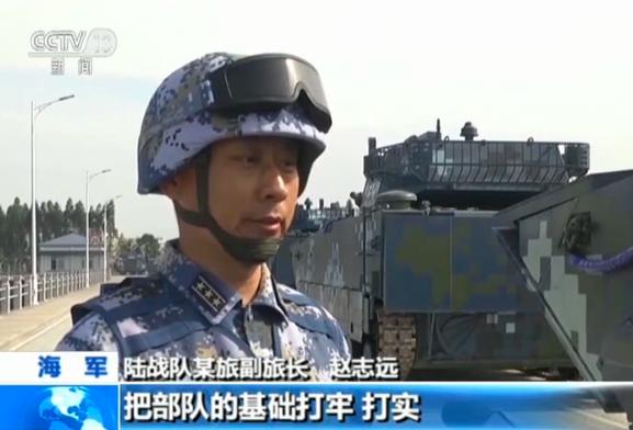 海军陆战队某旅副旅长 赵志远:狠抓部队基础训练,把部队的基础打牢打实。我们还要进一步强化部队的协同训练,要加强与水面舰艇、潜艇、航空兵等兵种的协同,不断提高两栖作战能力。