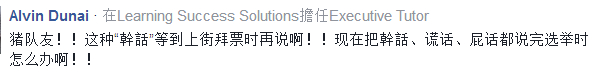还有网友表示,“猪队友,这种‘干话’等到上街拜票时再说啊,现在把谎话、屁话都说完选举时怎么办啊!”