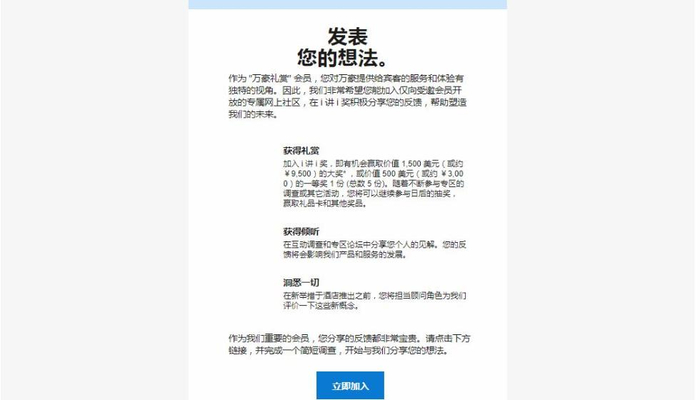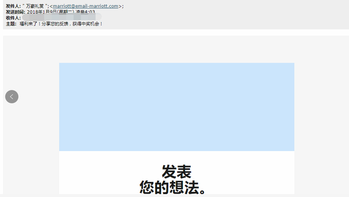@羽衣化蝶 还给环环发来了万豪国际酒店发给白金会员的原始邮件,不过环环发现,这封邮件现已将该活动内容设为调查结束,无法继续查看。