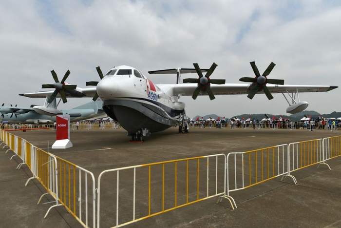 2016珠海航展上的AG-600原型机,可见其标志性的船形机身。