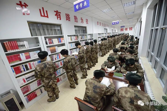 它占地1000平方米,书籍种类涵盖哲学、历史、文学、军事等11个大类,藏书12万余册,借鉴的是国家图书馆先进的运行管理系统。同时,蓝军旅还与解放军出版社、北京大学出版社等十多家国内知名出版社共建,图书几乎是每季度一更新。