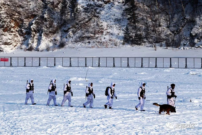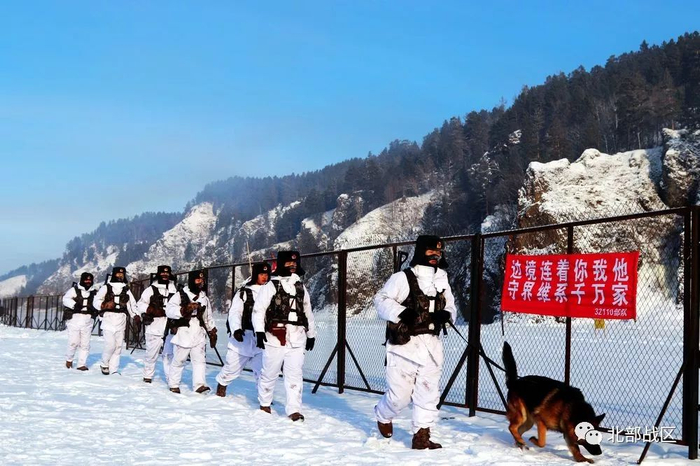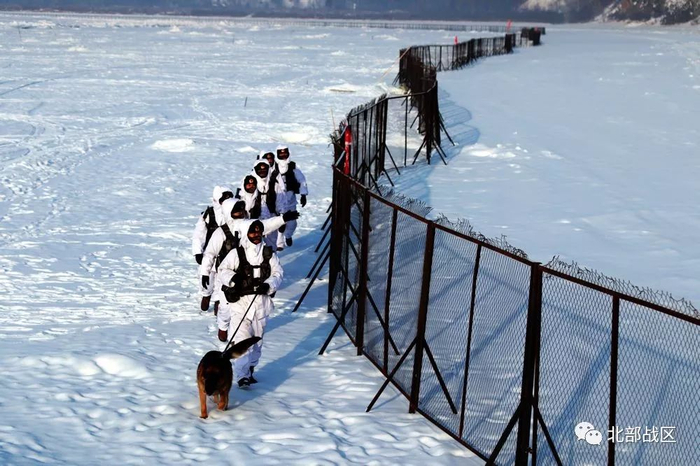 驻守于此的北部战区陆军某边防旅52分队官兵,在-40℃的极寒天气中,顶风冒雪、不畏严寒巡逻在边境一线,确保游客和边境地区的安全稳定。