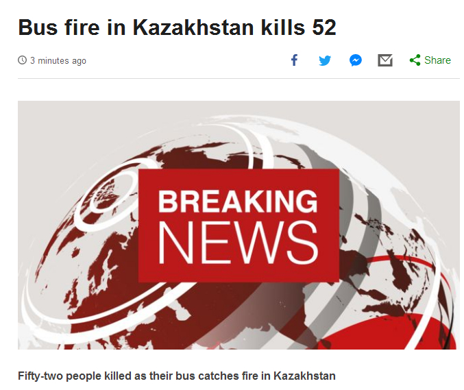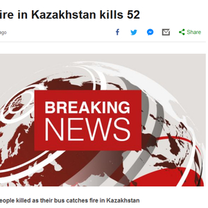 哈萨克斯坦一辆大巴起火 已导致52人死亡