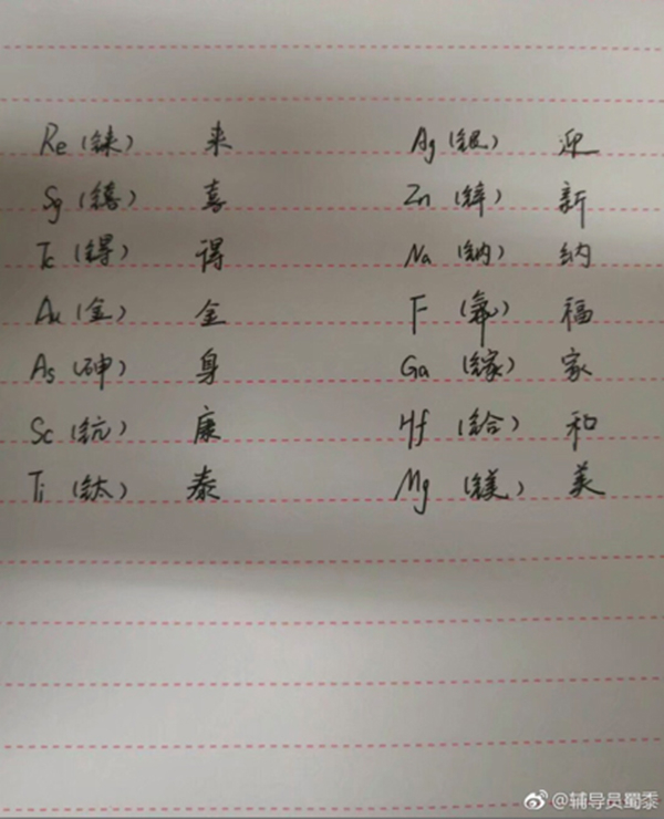 原标题:《江苏一大学生用化学元素拼写春联:高中曾“翻译”》