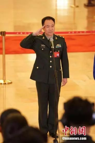 2017年10月18日,人民大会堂一楼中央大厅北侧,党的十九大代表景海鹏一身戎装,昂首走过“党代表通道”。