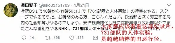 就在1月21日,日本NHK 电视台又播出了一部揭露日军丑行的纪录片,《731部队——人体实验是这样展开的》。