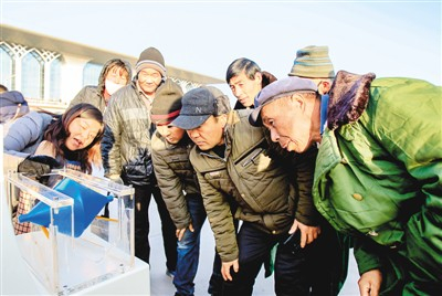 1月16日,在陕西省西乡县,全国文化科技卫生“三下乡”集中示范活动陕西分会场,上万名群众把各个服务台围得水泄不通。球幕电影、智能机器人和3D打印技术人气爆棚,吸引了大量群众围观。