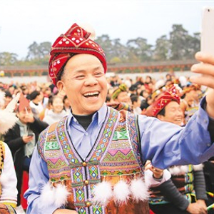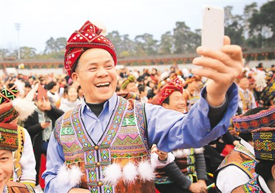 1月17日,2018年全国文化科技卫生“三下乡”(广西)集中示范服务活动在融水苗族自治县进行,苗族群众在观看文艺演出时开怀大笑。龙涛摄(人民视觉)