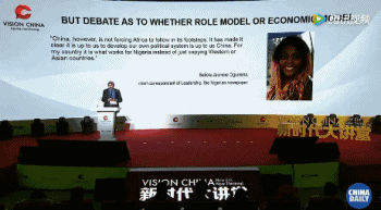 It was important that China wasn't forcing its own particular model of development on Africa and in Nigeria's case. It was better it found its own model of development and did not just copy either Asian or western models.