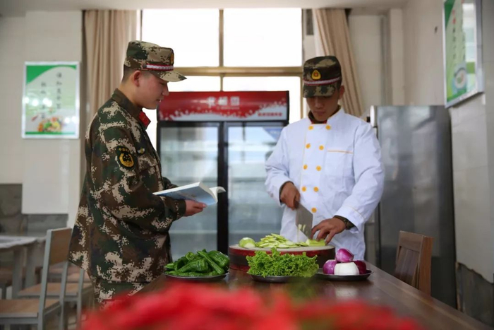 一“老”一“少”迎着清晨的第一缕阳光奔赴他们的“战场”。三个小时的精心准备,方桌已经搭开。桌布上,放着两只细瓷蓝花碗,一碗雪菜炒竹笋,乌青里夹着玉丝;一碗菜秧汤,碧绿里泛着白梗,现在,再添上一盘红烧鲤鱼,一盘凉拌水萝卜。精致的摆盘、悦目的菜品,谁能想象这是出自一个新兵之手?一切准备就绪,这时,教导员手里拿着一份文件走了过来。他一脸严肃地说道:“大家先放松一下,炊事比武暂时取消,现在更重要的任务来了!基地临时抽检团里参加重大军事演习,各站炊事班选派两名人员参与保障工作,你们谁想报名?”